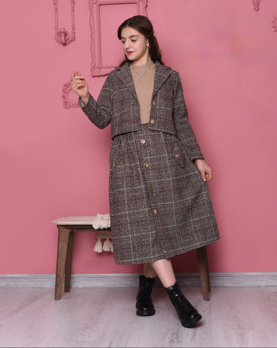 ست کت و سارافون دخترانه مخمل کبریتی دو تیکه